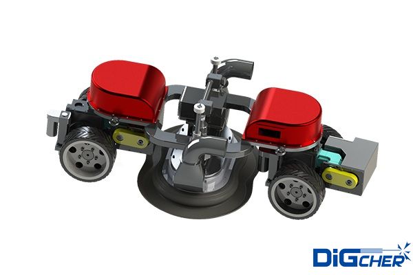 鑒于此,針對于新建罐內(nèi)部的打磨除銹施工,德高潔自主研發(fā)并投入使用了一套CR4-STP600打磨除銹爬壁機器人,施工時僅需人工手持遙控器控制爬壁機器人完成高空作業(yè),無需搭載腳手架,并避免人工高空墜落的安全隱患。